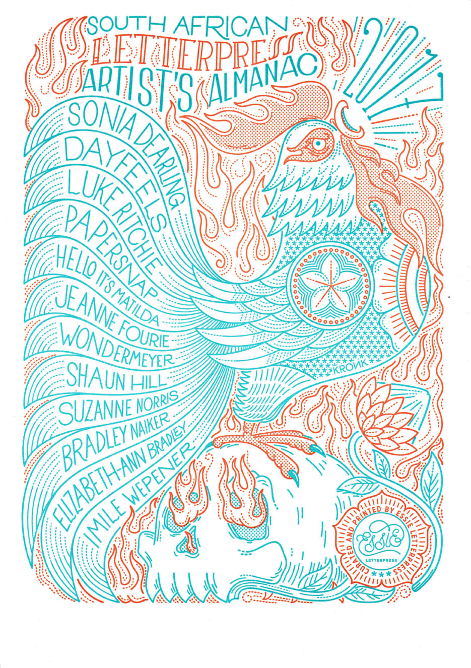 Essie Letterpress is a letterpress printing company run by husband and wife team Ben and Vanessa Grib. The couple asked 13 South African artists and illustrators to help create their fifth annual South African Letterpress Artist’s Almanac comprised of whimsically illustrated artworks.