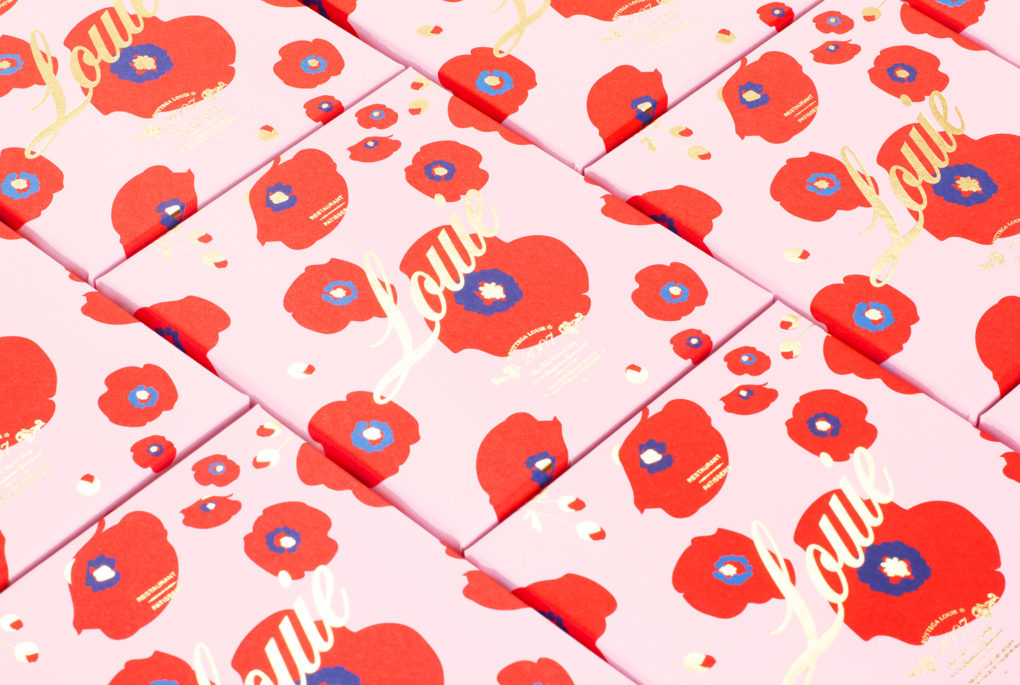 Fashion is a huge inspiration. We started designing this box in January when pre-spring lines were previewing illustrative florals in rich, contrasting patterns. Vivienne Westwood, Stella McCartney, Gucci, and Kenzo were inspirations, to name a few. I had started with illustrating a beautiful Helleborus odorus flower, but it was overly delicate and an obvious design for a Bottega Louie summer macaron box. The poppy illustration started with more detail and tonal variation but through the editing process, the design started to felt more contemporary as it moved away from literal and became more and more abstracted. Marimekko is an excellent reference of how to really nail simplicity in patterns.